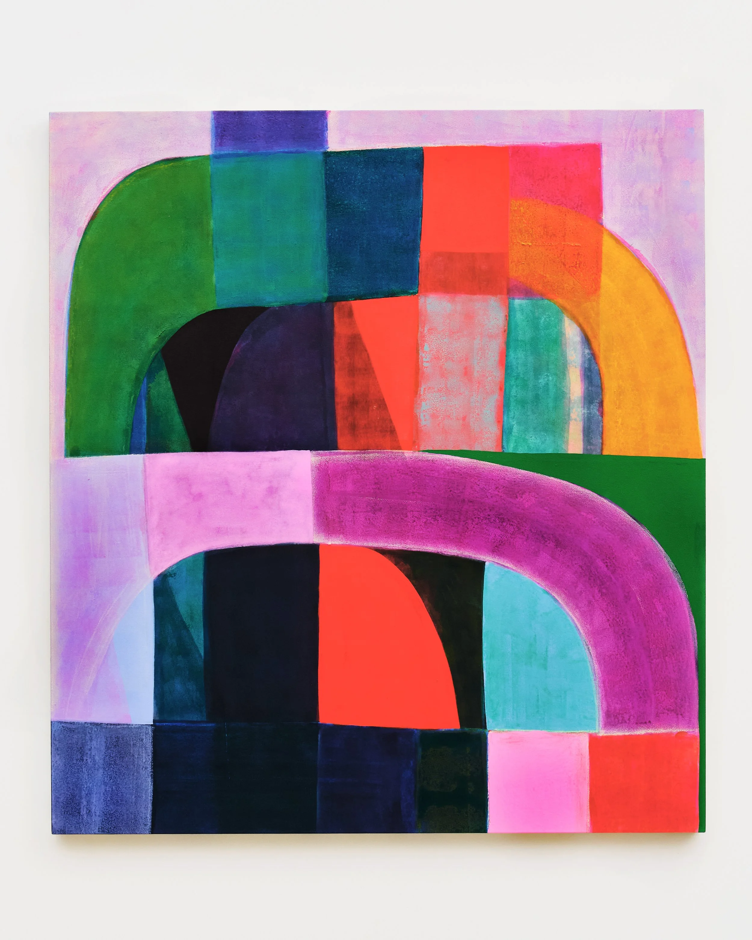 Margaux Ogden, Bathers (Vat Orange, Quinacridone Magenta, Indian Yellow Hue, Primary Magenta & Green Gold), 2025, Acrylic on canvas, 64 x 48 in, 162.56 x 121.92 cm