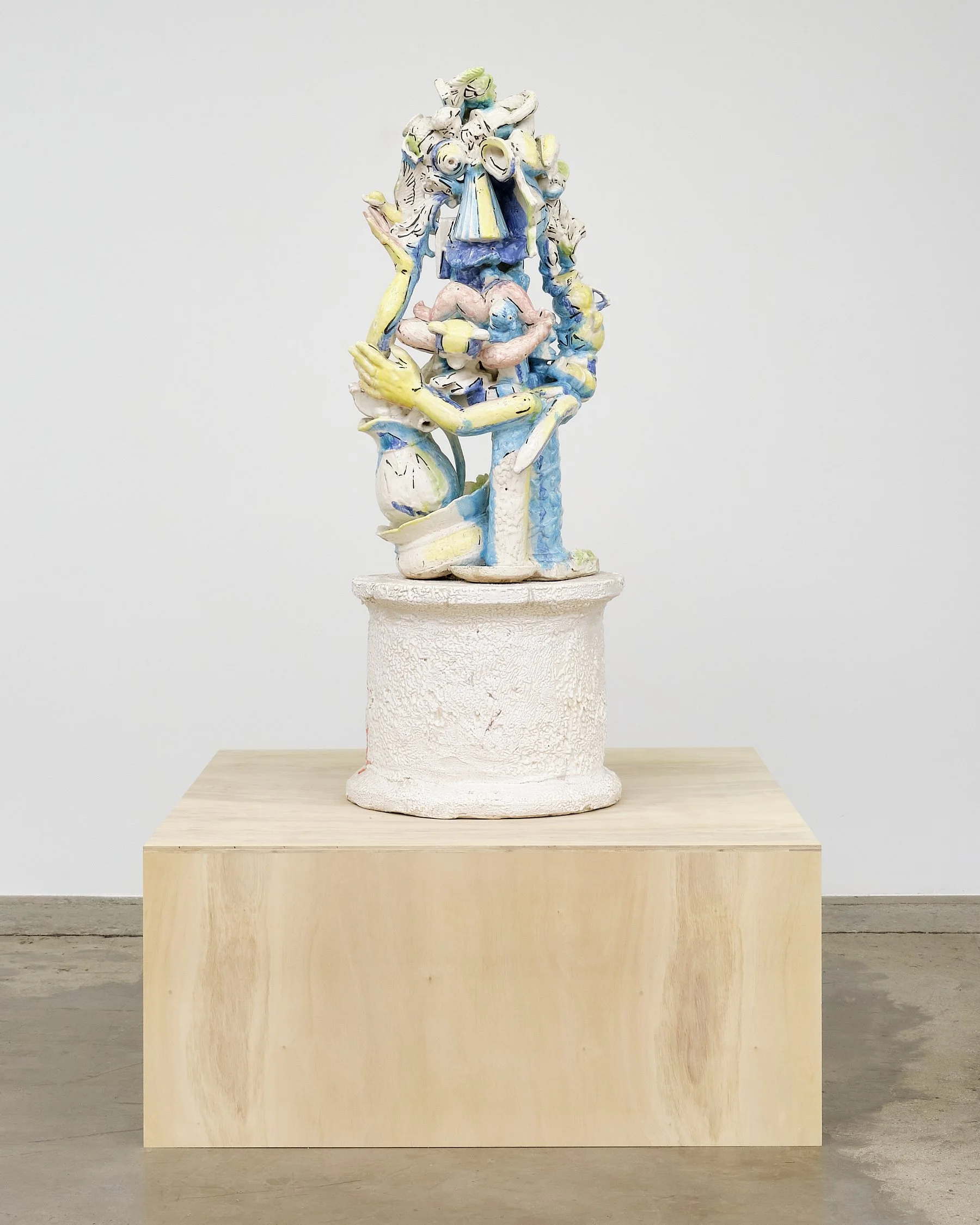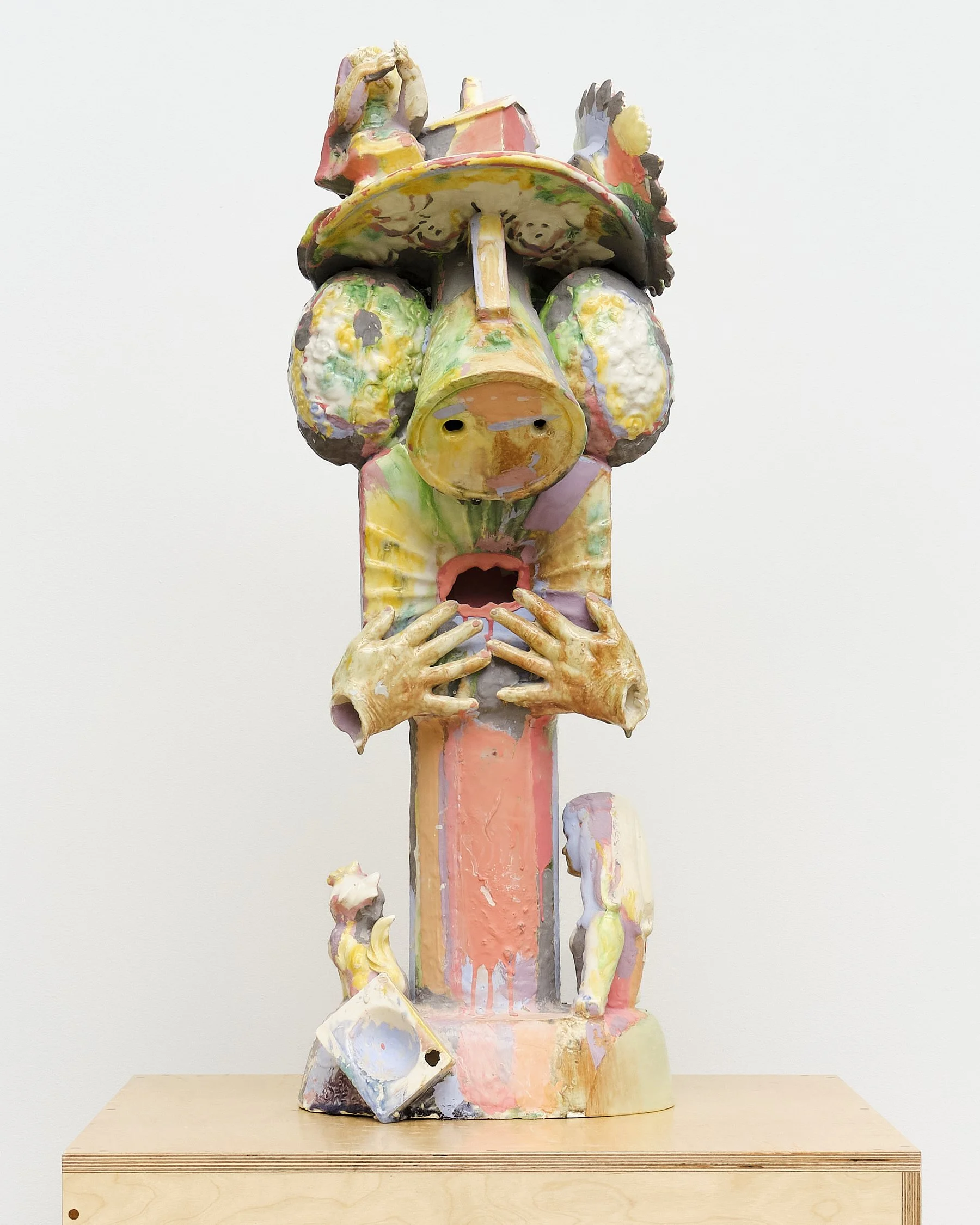Viola Frey, Untitled (Bricolage with Pink Oval Head in Hat), 1980-1983, Glazed ceramic, 29 1/4 × 21 3/4 x 14 in, 74.30 x 55.24 x 35.56 cm