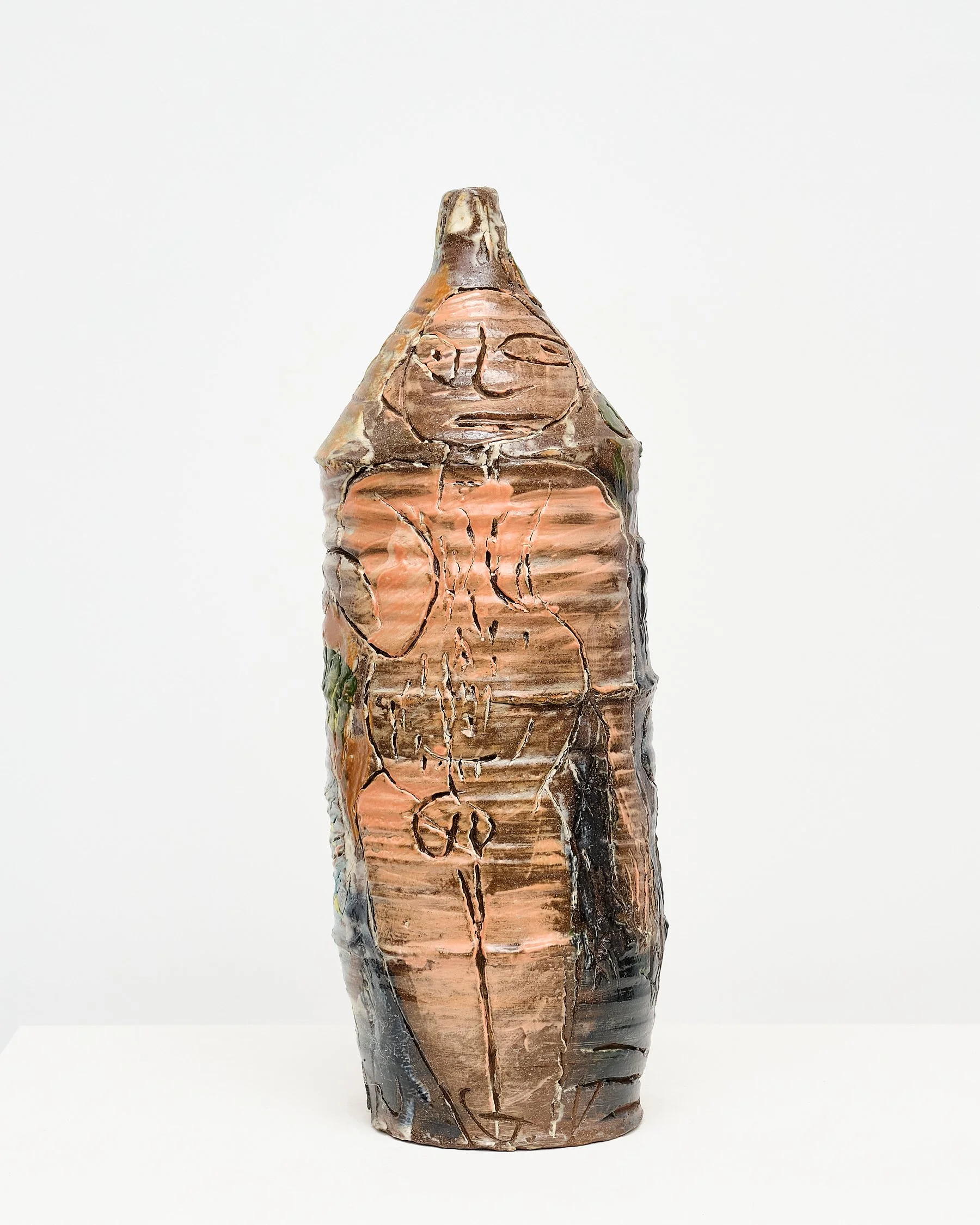 Kirk Mangus   Pink Clouds , 1987 Stoneware, Slips & Sgraffito 29 x 16 x 16 in 73.66 x 40.64 x 40.64 cm
