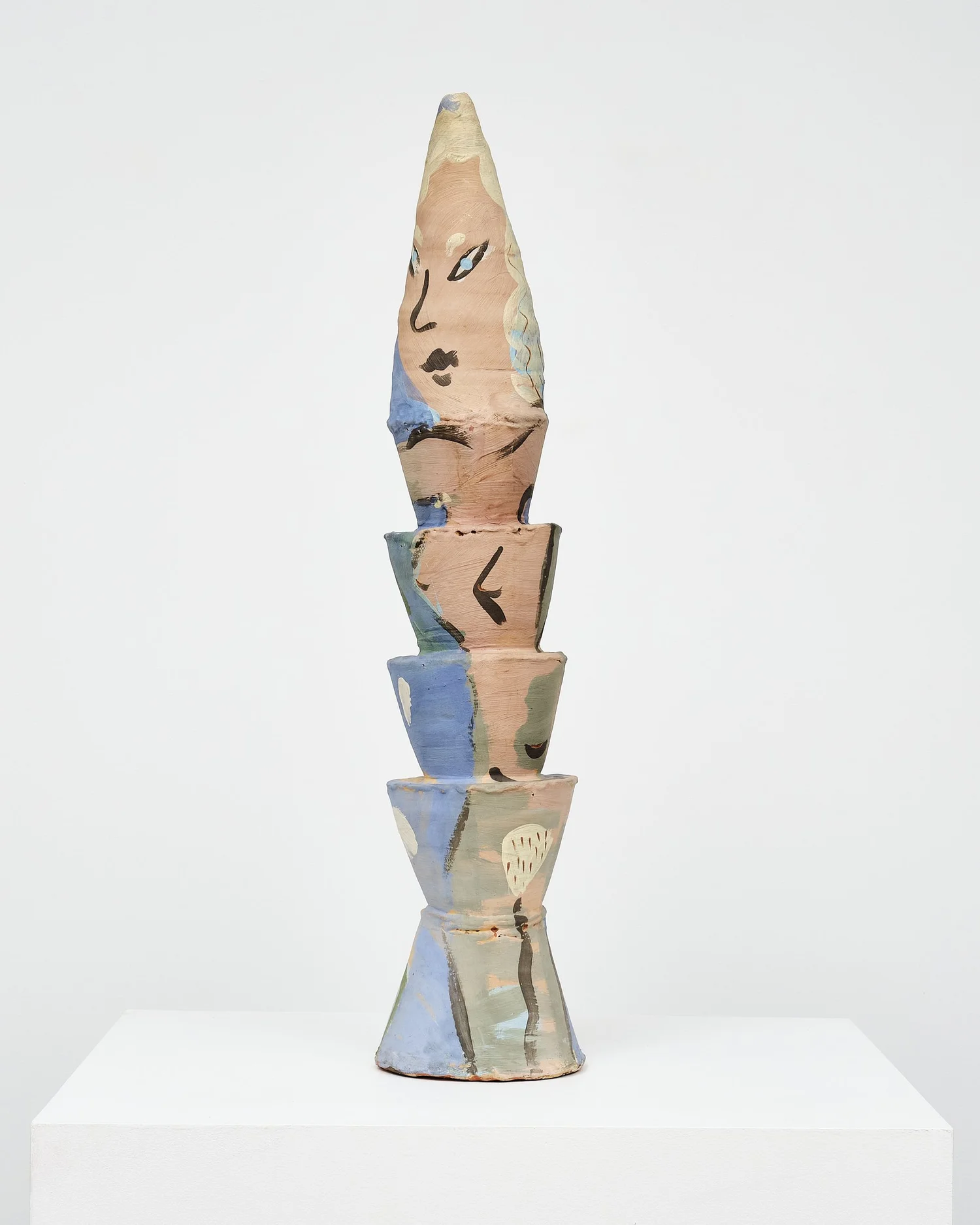 Kirk Mangus   Crowd , 1983 Stoneware, wheelthrown, colored engobes 36 x 16 x 16 in 91.44 x 40.64 x 40.64 cm