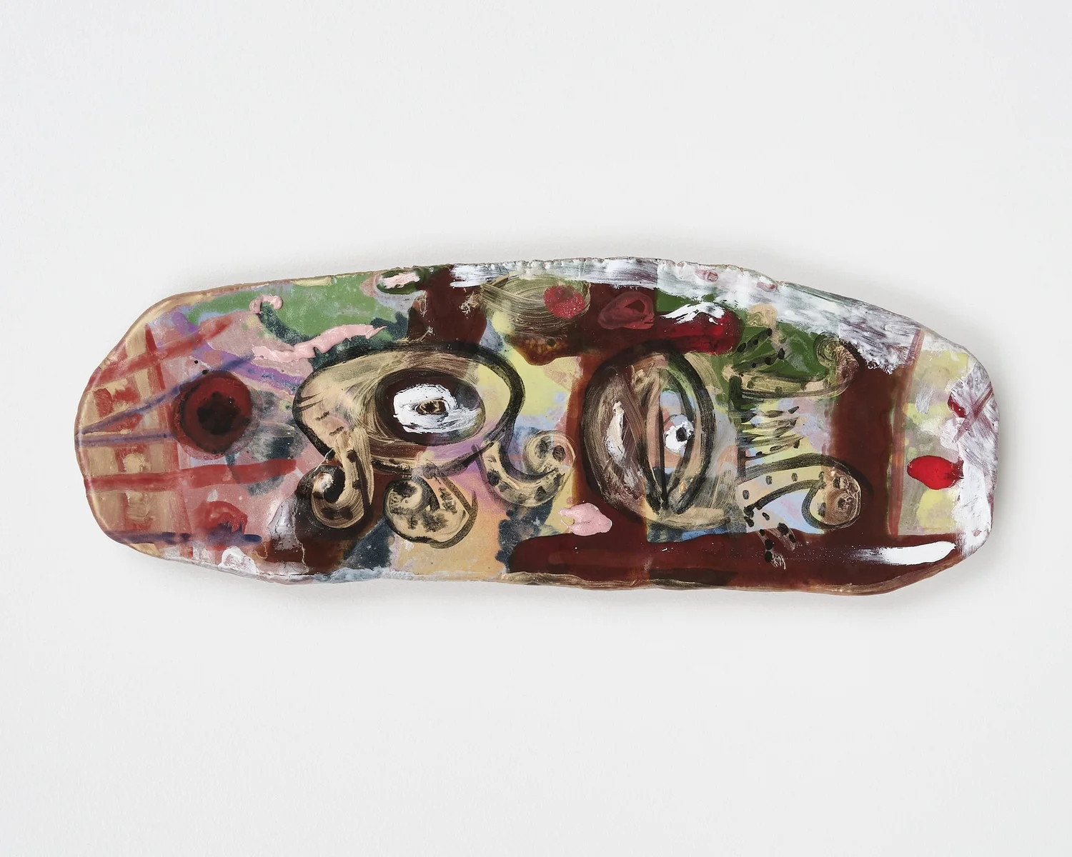 Kirk Mangus   Two Jellyfish  Earthenware, slips, glaze, overglaze and luster 7.5 x 19.5 x 2 in 19.05 x 49.53 x 5.08 cm