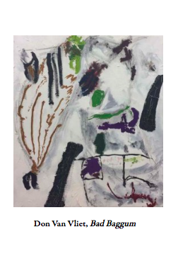 Outlier Don Van Vliet is the only work that seems misplaced in Press Your Space Face Close to Mine. His music, under his better known name, Captain Beefheart, certainly correlates to Curry’s interests, but his abstract oil on canvas, Bad Baggum looks out of place amongst the figurative and comic inspired works. Leaning towards Abstract Expressionism, Van Vliet’s painting largely black and white palette might relate to A.R. Penck’s painting, but the difference is vast between the two. His inclusion may be more sentimental, indebted to his music rather than aesthetics.