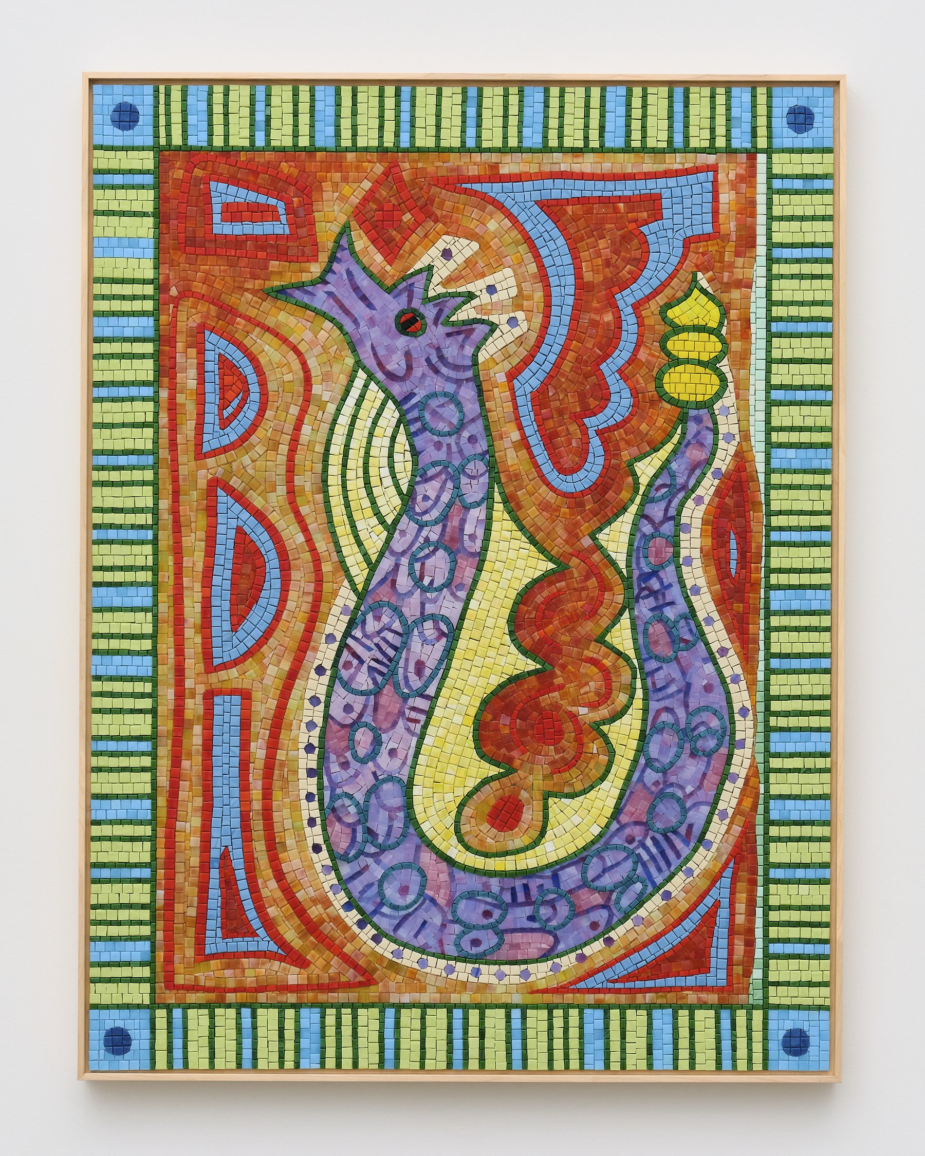 Tamara Gonzales, Conjure, 2026, Glass mosaic tile mounted on aluminum honeycomb board with maple frame, 40 x 30 in, 101.60 x 76.20 cm
