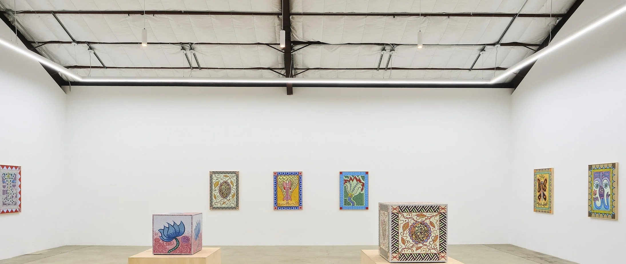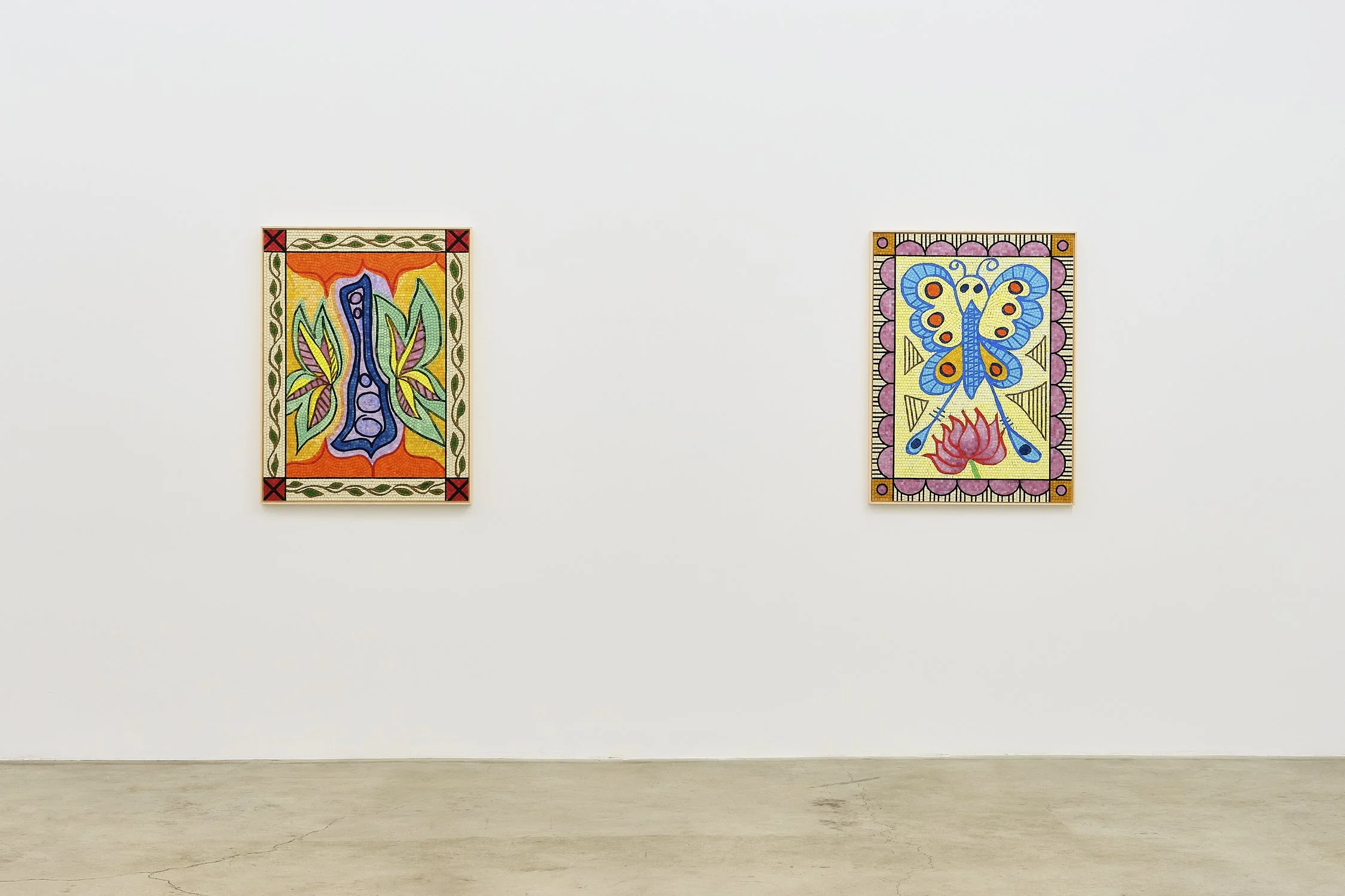 In the exhibition, the mosaic titled “Viriditas” depicting a growing lotus, is named after a term coined by medieval mystic Hildegard von Bingen. More than simply “greenness,” viriditas describes the vital force of life itself—spiritual vitality, creative fecundity, the divine energy flowing through all living matter. For Hildegard, when something is alive, ethical, or holy, it possesses viriditas; when corrupt or deadened, it has lost its greenness. A philosophy central to Gonzales’s practice, the concept honors becoming over being, process over purity, lushness over control.