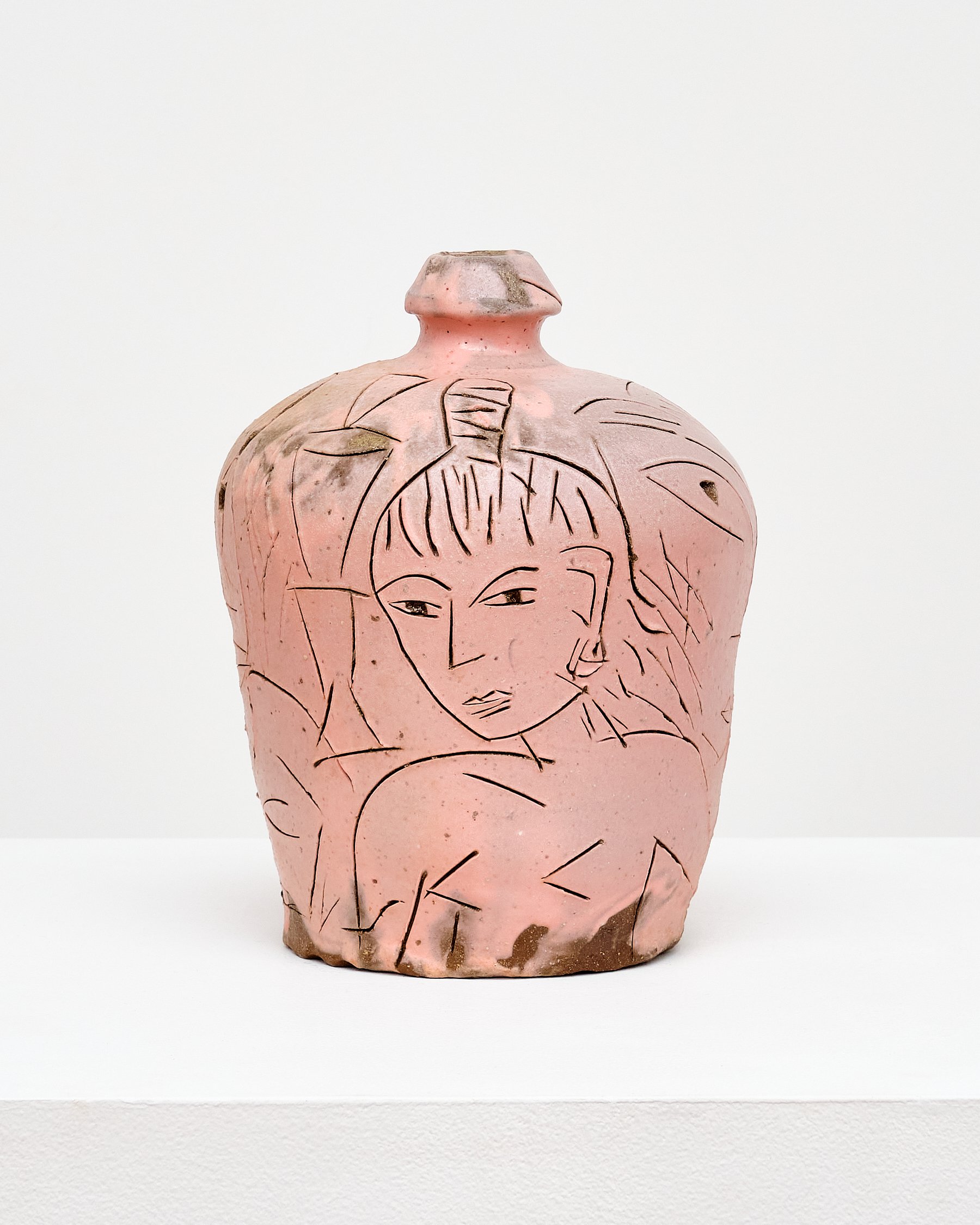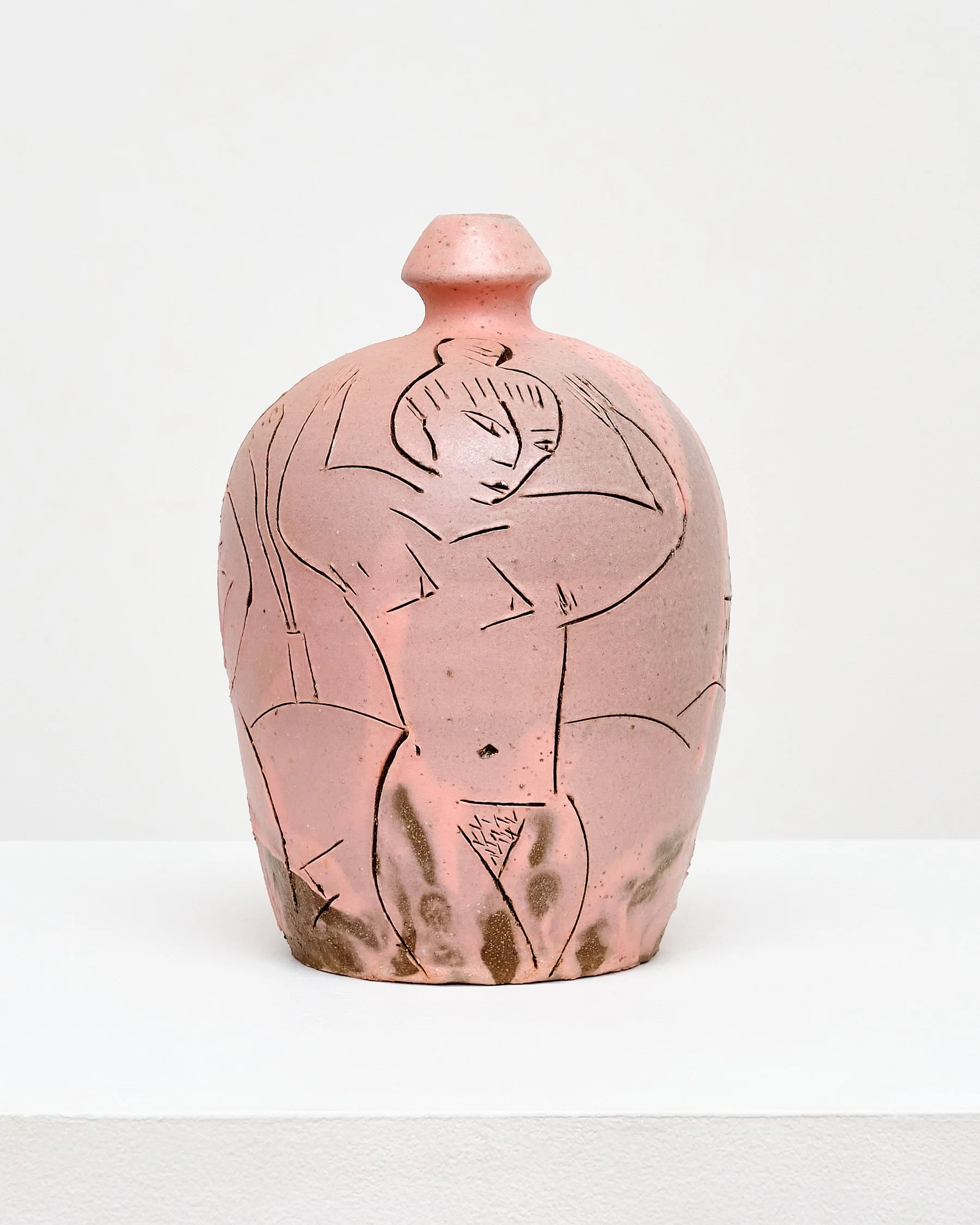 Kirk Mangus, LILY (PINK BOTTLE), 1985, Stoneware, slips and salt, 10 x 7.5 x 7.5 in, 25.40 x 19.05 x 19.05 cm
