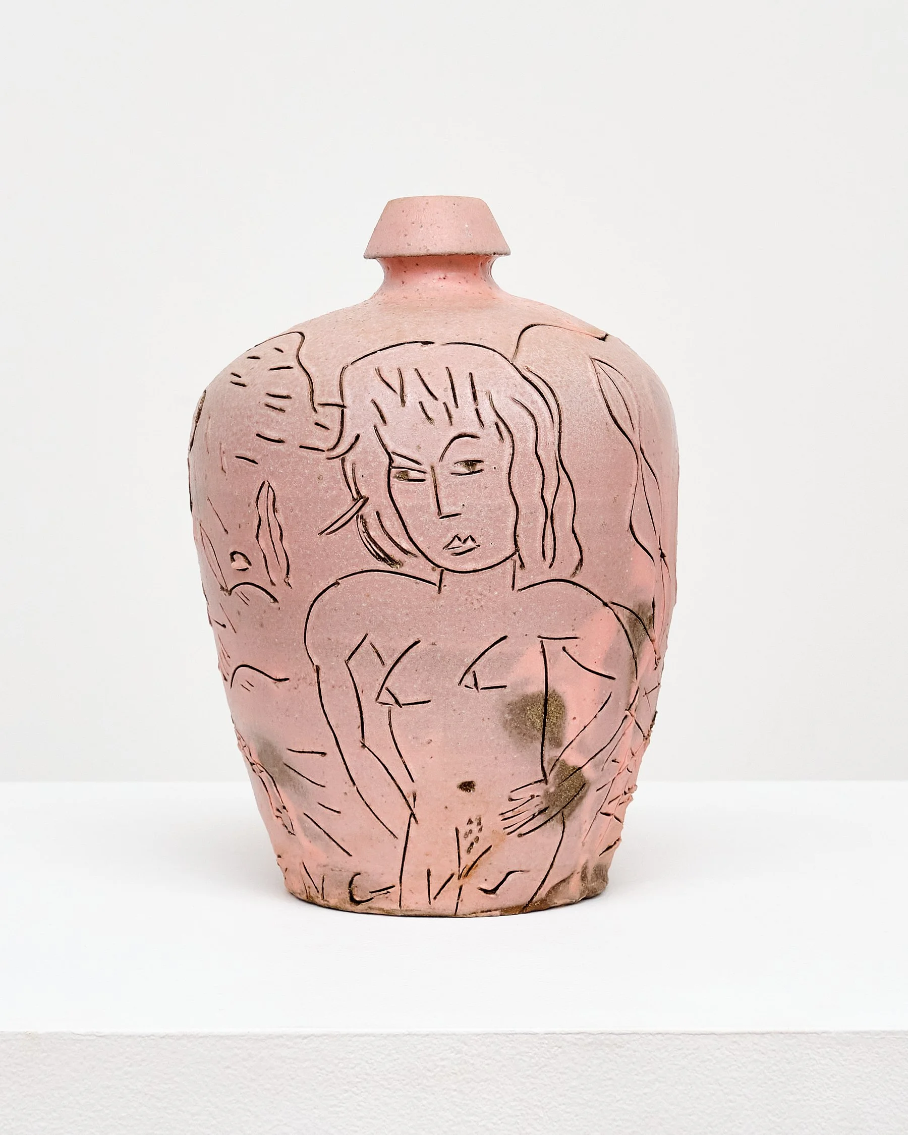 Kirk Mangus, EVE (PINK BOTTLE), 1985, Stoneware, slips and salt, 10 x 7.75 x 7.75 in, 25.40 x 19.68 x 19.68 cm